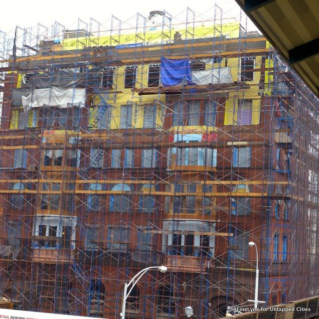 In 1997, a fire took the top two floors and mansard roof of the building. Wooden boards went into the windows and scaffolding went up.