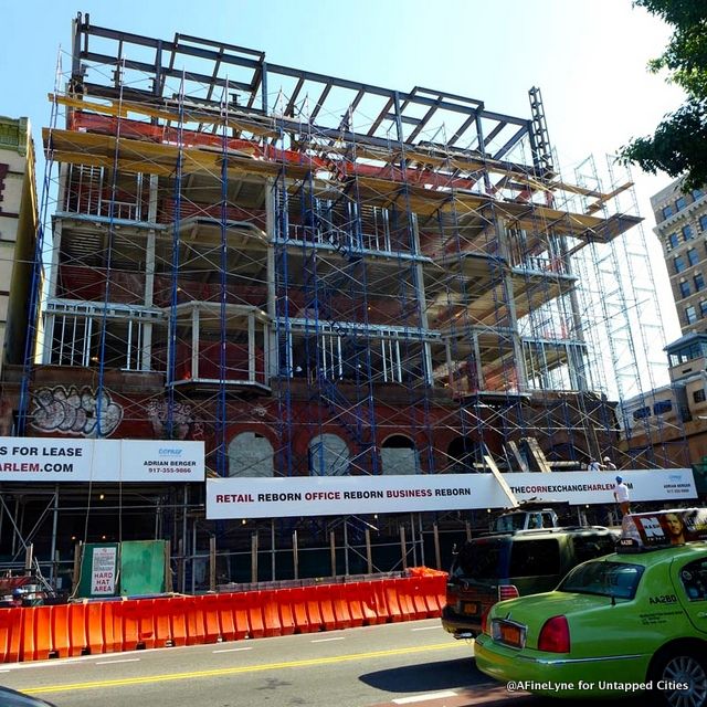 We’ve been closely following the restoration of the historic Corn Exchange Bank Building in Harlem since the restoration project began last year. Located next to the 125th Street Metro North Station, this landmarked building from 1884 had initially succumbed to a fire that destroyed the two-story mansard roof. An additional four floors were demolished in 2009, after the city deemed the structure unsafe, leaving only a two-story shell facade. It is now back to life after a $17 million dollar renovation. In this article, we’ll show in photos the building over the last century plus, including the phases of restoration, and a sneak peek of the interior.