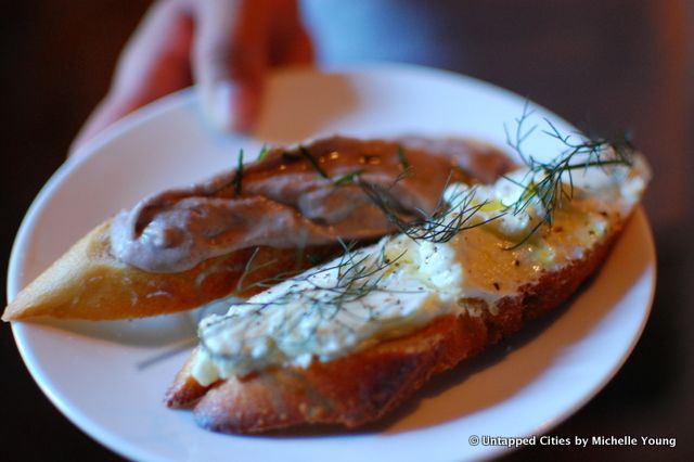 Select artisanal toast, heirloom bean puree with rosemary and whipped ricotta with sea salt (Cayuga’s Pure Organics and Orwasher’s Bakery)
