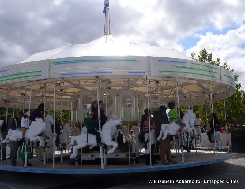 Not far from the 3-D printers, kids were learning how to blow glass with Jenine Bressner and Brooklyn’s 3rd Ward gave visitors a chance to dome pennies. I took one home with me! A surprising number of youngsters were doming their quarters-clearly they’re not of the age when they realize the working value of a quarter at the laundromat in New York City. Closer to the intersection of art and technology, attendees could learn how to solder, or if they preferred a less hands-on experience they could hop on board the General Electric Solar Carousel. See it in action here.