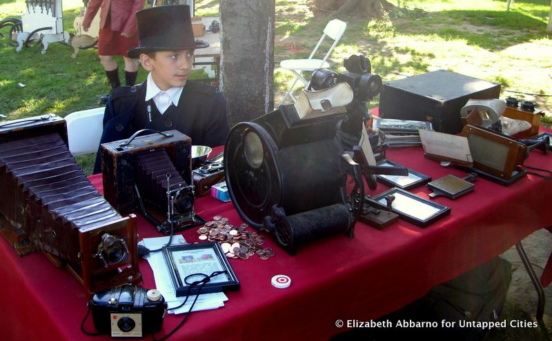 We closed out our Maker Faire experience with a trip to The Museum of Interesting Things, which is probably the only museum in the world that will bring its collection to you. A delightful young man in a top hat presented the photography equipment to us, peppering us with interesting facts and tidbits. In addition to photography, the museum has seven other departments: toys, math, medical, literature, household, science and music.