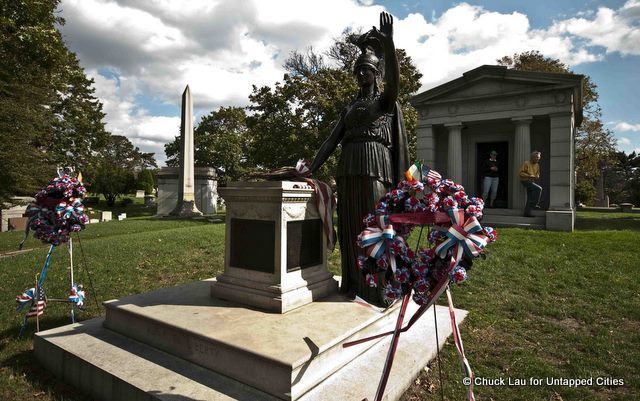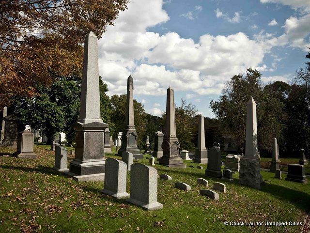Green-Wood cemetery is visited by an estimated half a million locals and tourists a year. The grounds offer astounding views of the Statue of Liberty, the Manhattan skyline and the New York Harbor. The vast 478 acres is the home to 560,000 deceased who include Civil War veterans, Leonard Bernstein, Boss Tweed, Jean-Michel Basquiat and Samuel Morse. Many visit the cemetery to admire the above-ground burials in the catacombs. The catacombs consist of 30 vaults. And, in many cases, one family owns each vault.