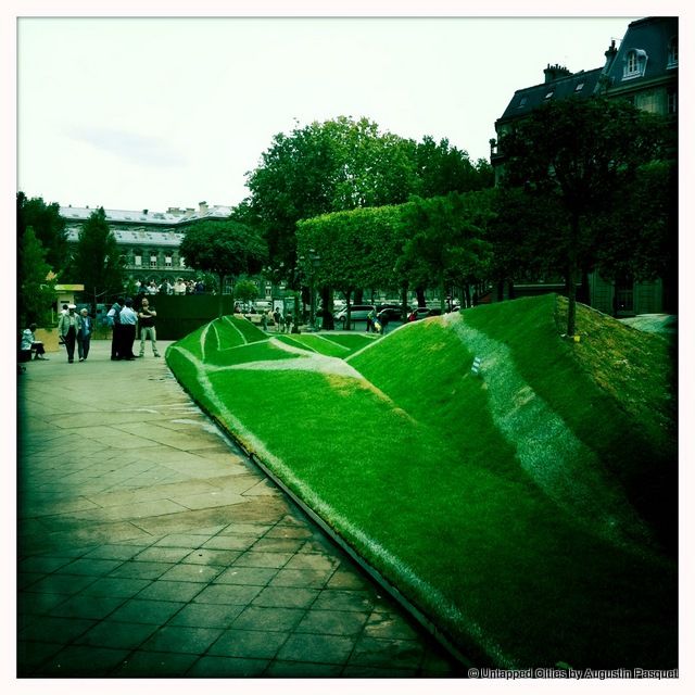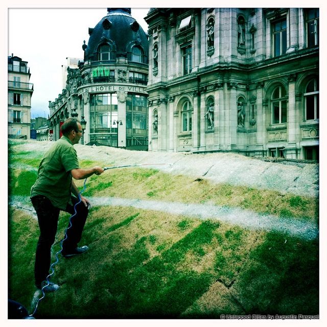 When we first saw this reported by the Huffington Post, we had to go check it out for ourselves. In front of Paris’ Hôtel de Ville (city hall) in the Marais is a piece of landscape art designed to look 3D.