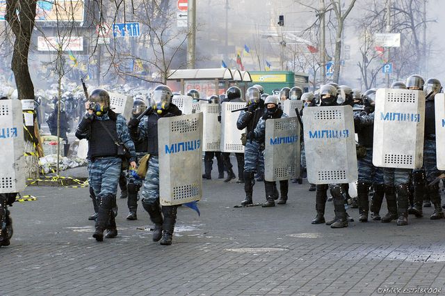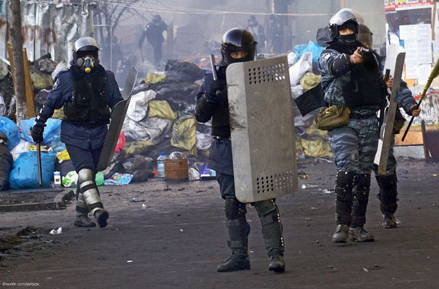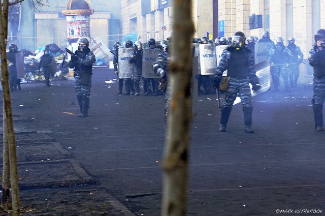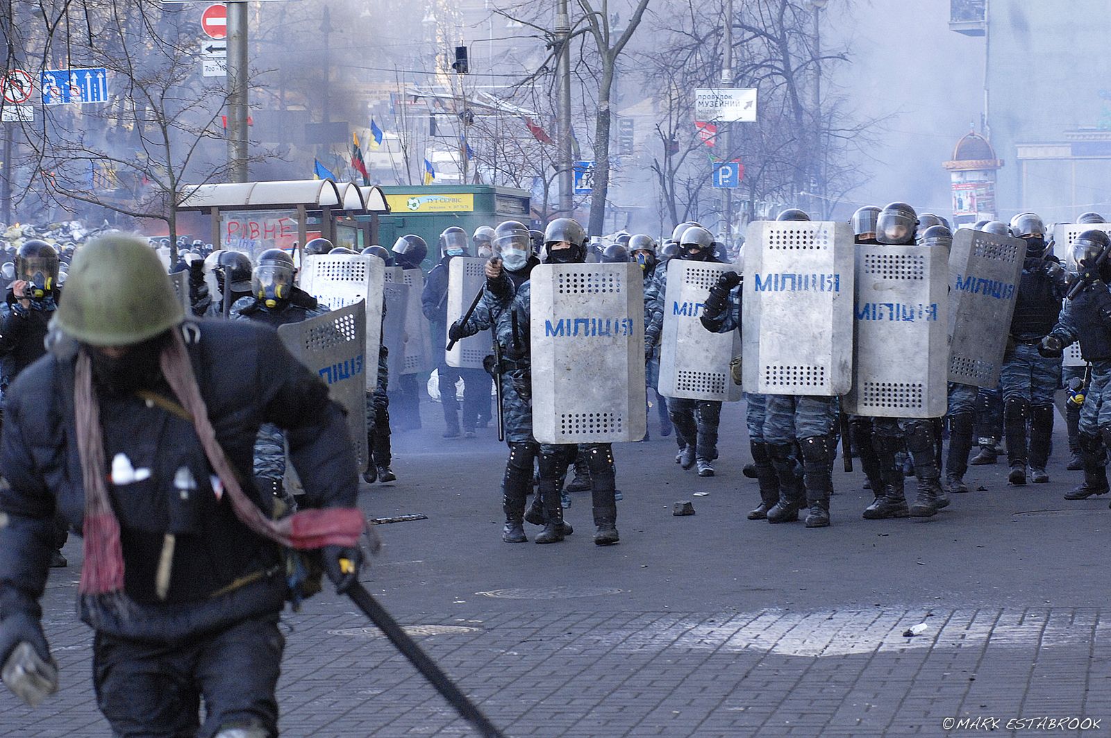 Even with my previous experience in photojournalism and military service in the Air Force that included surveillance work in the Persian Gulf, I was not prepared for a murderous police force that had already kidnapped, tortured, or beaten over 100 journalists in the previous two years. In one incident, a journalist had been decapitated in September 2000, while others have been abducted and are still missing. I was also not prepared to see the Ukrainian fighters challenge armed Berkut police with clubs, rocks and Molotov cocktails.