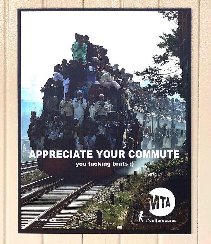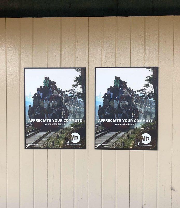 One of the main components of the campaign is the “Influencer Free Zone,” designed to look like a real subway warning sticker. If you directly message the @culturecures Instagram account, you can receive these stickers for free to spread. Larger posters are also part of the campaign, depicting an overcrowded train overflowing with people with the words “Appreciate Your Commute” in bold lettering at the bottom. The message is clear: be grateful in the present moment, and lift your head up from your phone screen.