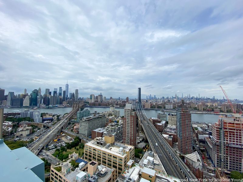 90 Sands Street, the former Jehovah’s Witness Dormitory, towers over its neighbors in Dumbo, Brooklyn alongside the Manhattan Bridge. The Jehovah’s Witness properties, which extended between Brooklyn Heights and Dumbo, have been parceled out over the last few years. The largest tract was transformed into the mixed-use campus Panorama which opened earlier this year. 90 Sands Street is unique however, as it is being redeveloped by the supportive housing provider, Breaking Ground. Closed since 2017, 90 Sands is very much frozen in time with ’90s era wallpaper and decor throughout. We were recently taken on a truly fascinating tour inside the 30-story building, from the basement levels all the way up to the observation deck which offers nearly 360 degree views of Manhattan and Brooklyn.