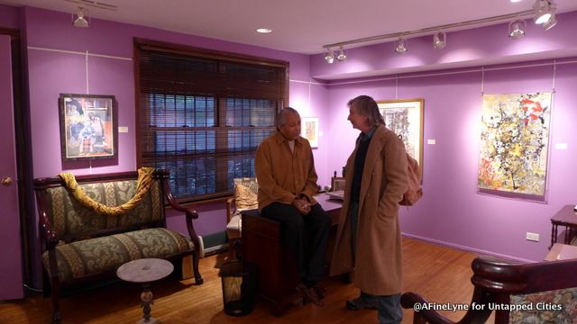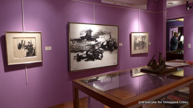 Near the reception area, you will see what appears to be a double-door closet. But when opened, you will be treated to large wire panels that open like a book with exquisite paintings on each ‘page’ after page after page. A gallery inside a gallery.