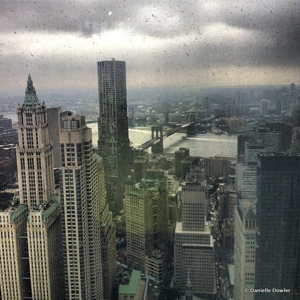 View of the Woolworth Building, NY by Gehry and Brooklyn Bridge from 1 WTC: