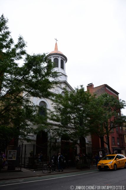 The church has stood in Greenwich Village since 1855. The Federal-style building, built some thirty years earlier, is one of the oldest religious buildings in Greenwich Village. in 1842, the property was sold to St. Matthew Episcopal Church, who worshipped there until its current German Lutheran owners purchased the location. It was noted recently for hosting a number of events in conjunction with NYC Pride 2015.