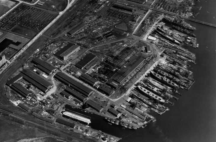 At its height, the Federal Shipbuilding and Drydock Company employed around 35,000 people daily and constructed 464 ships from World War I through World War II. For a period, the shipyards launched a new ship every five days. Notable ships built at Kearny include the USS Juneau, sunk by a Japanese torpedo in 1942 near Guadalcanal and many destroyers in both world wars. Closed in 1948, the facility was converted into a commercial shipbuilding facility, a ship dismantling operation from the 1960s and 1980s, and a industrial/manufacturing facility until Hurricane Sandy ravaged the site. The shipyard also influenced the urban development of surrounding neighborhoods – parts of Jersey City were built as housing for supervisors at Kearny.