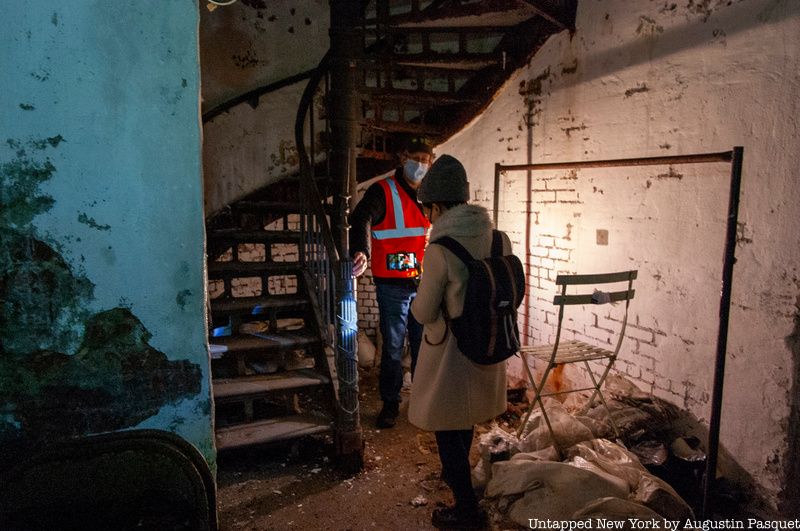 The spiral staircases are actually made from a mix of cast iron and wrought iron, which are used for the curved pieces. It’s not feasible to source wrought iron anymore, so they will likely be replaced with steel. The most damaged pieces of the staircase are those attached to the brick wall, and to replace those sections, the entire staircase will need to be unstacked and then reassembled. Each piece of the staircase is stacked on the one below, so work will need to begin from the top down. The engineering firm Thornton Tomasetti, whose motto is “When others say no, we say ‘Here’s How'” was hired to consult just on the staircases. “It’s going to be interesting,” says Maddry understatedly of the staircase restoration, “just the cast iron repair is its own thing.”