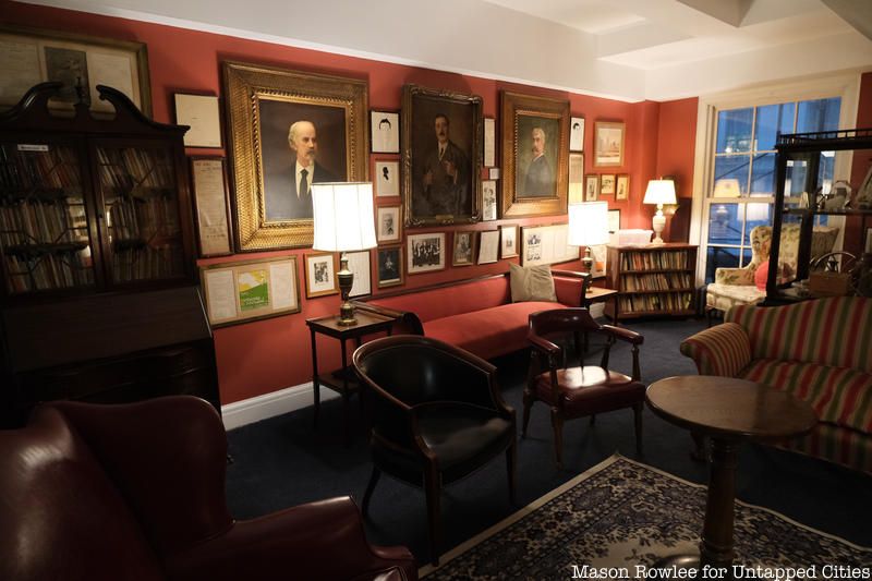 Have you heard of the national Broadway shows Stalag 17 or Mark Twain Tonight? These shows originated at The Lambs, America’s first professional theatrical club. The club also functions as a historical society and houses fun, unique knick knacks such as speakeasy cards from the Prohibition-era, actors’ railroad tickets from when they would travel to perform, and a fan favorite of the Lambs: a ferocious portrait of the cowardly lion, Bert Lahr, as a clown! Untapped Cities recently gained access to the Lambs Clubhouse at a private club facility known as 3 West Club, a building shared with the Women’s National Republican Club, where we spoke with The Lambs’ historian Kevin Fitzpatrick and current members to learn more about the history of this landmark association.
