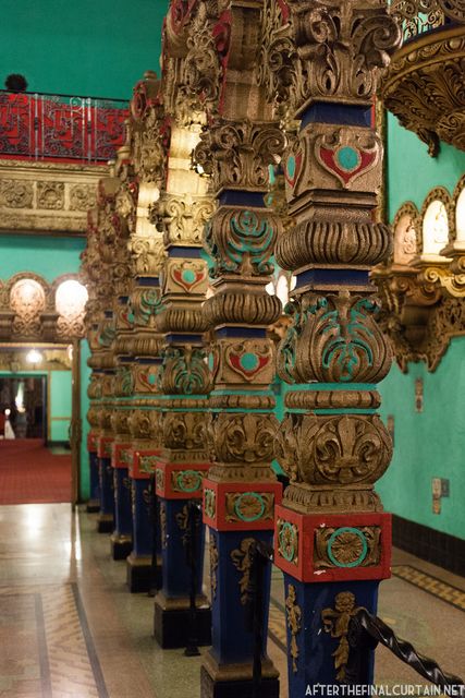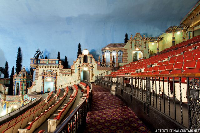 Austrian-born architect John Eberson was the mastermind behind the Valencia Theater, as well as the Loews Paradise in the Bronx, and countless other movie theaters scattered across the United States. He signature theaters were designed with an “atmospheric” style, to give audiences the illusion that they were watching a film in a distant and exotic outdoor arena beneath a starry night. In this context, John Eberson dreamed of a “magnificent amphitheater, an Italian garden, a Persian court, a Spanish patio, or a mystic Egyptian templeyard, all canopied by a soft moonlit sky.” In designing his theaters, Eberson sought variety and took great pains to ensure that the sidewalls in his theaters never matched. To enhance the magic of the movie going experience, each wall of the theater was meticulously shrouded with decorative elements and statuary.