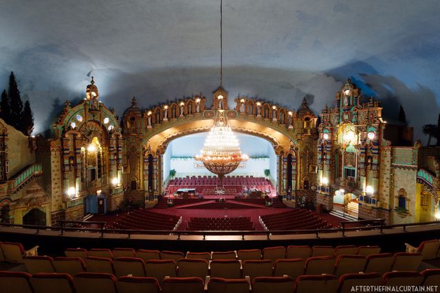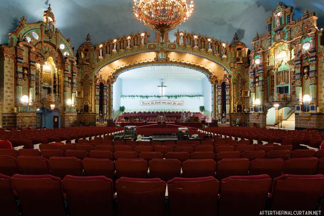 As other movie palaces, the Valencia Theater stands as a testament to the grand aspirations of engineers and architects during the first half of the 20th century, who envisioned theaters as spaces that could transport their audiences to the farthest stretches of their imagination. From its inception, the Valencia Theater entertained audiences until 1977, when it was forced to close its doors due to the City’s gradual decline. In 1979, the building was donated to the Tabernacle of Prayer for All People. The church kept the interior preserved, and has made a few slight alterations to the interior. A chandelier was added to the auditorium, and a number of formerly nude sculptures that once stood in the niches have been replaced with angels.