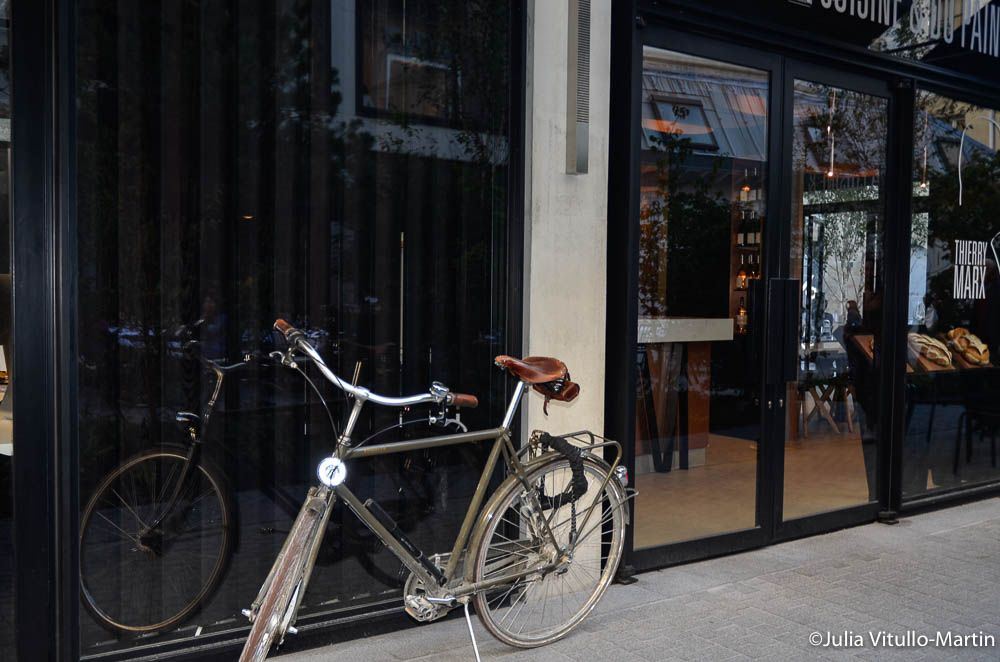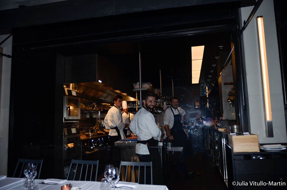 Yannick Alléno’s glamorous, hard-edged L’Allénothèque has what Bonjour Paris calls a “sexy, black, open kitchen.”