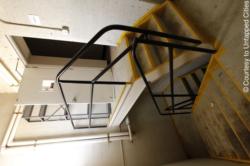 This was the final addition to the building, and it was the first part to be demolished. This stairway led to the basement.