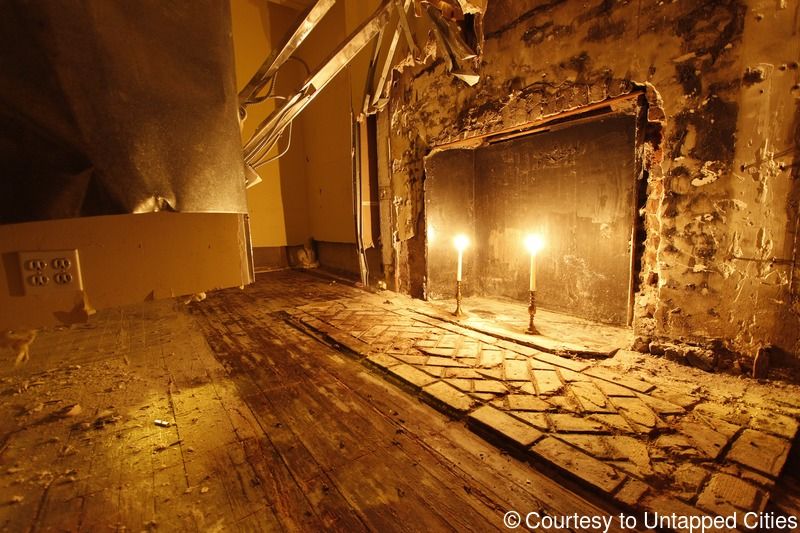 Where the Sheet Metal Workers put a classroom, another of the original Elks Lodge fireplaces had been hidden behind sheetrock. Although interior demolition marks the point of no return for a dying building, it is on their deathbed where most buildings reveal their final secrets.