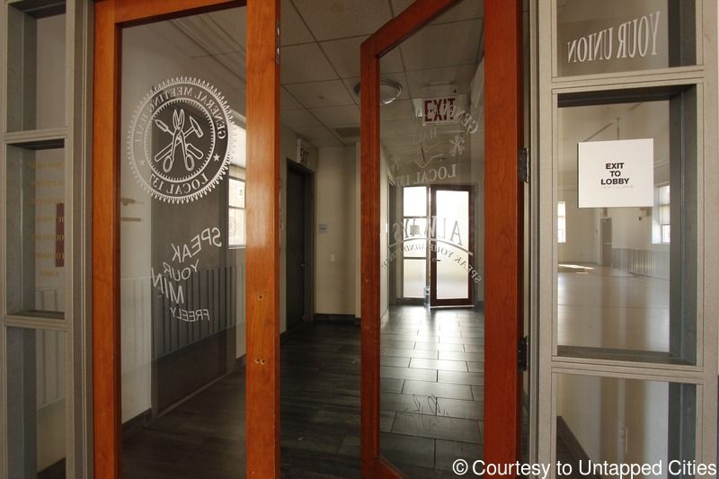 The Sheet Metal Workers Union Local 137 was the final tenant of this building. Decorative sheet metal lined the walls of the foyer, as well as many of the other rooms in this building.