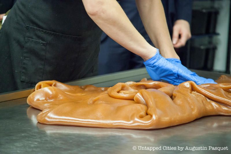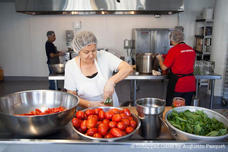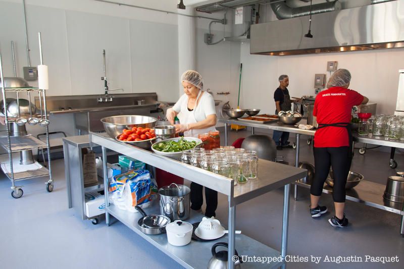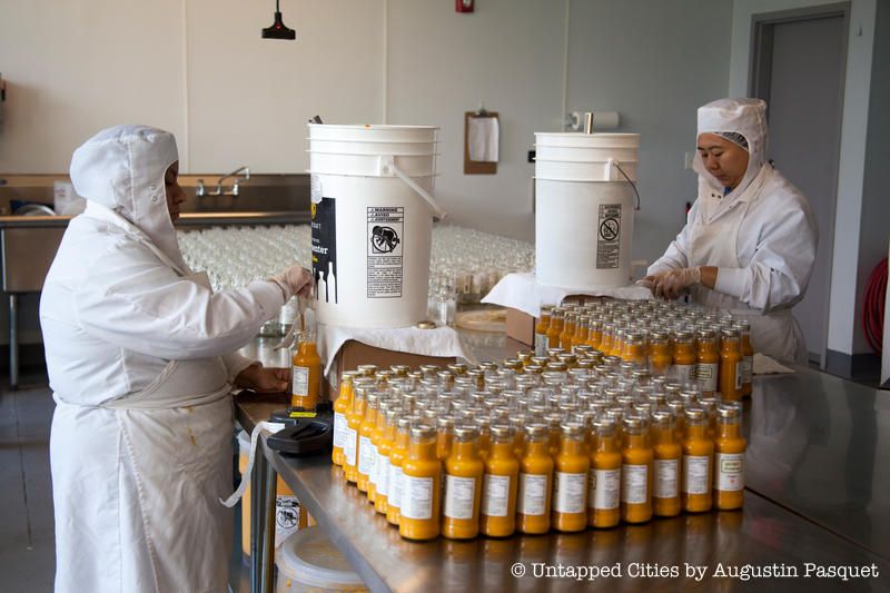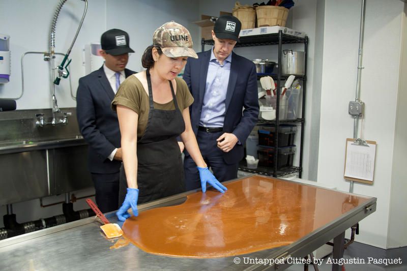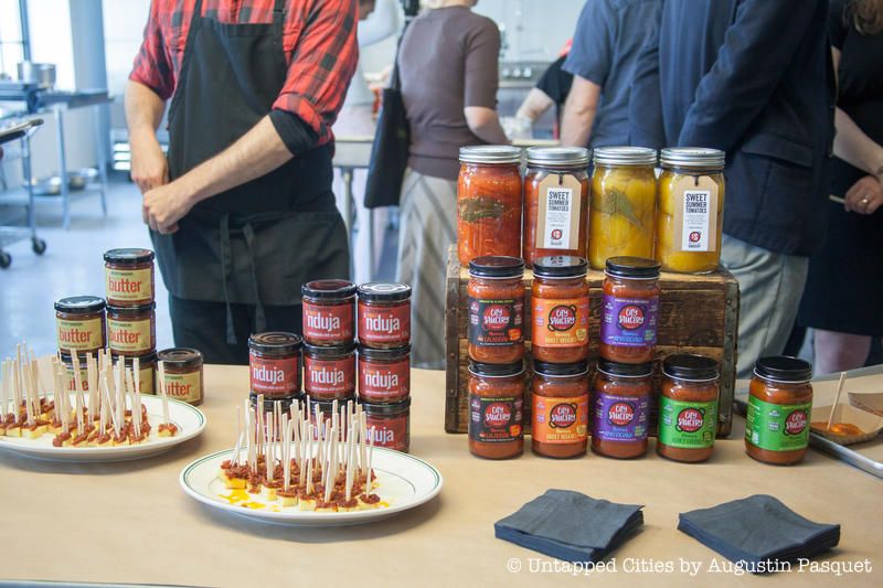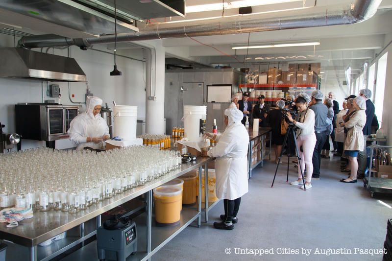 In an event opened by NYCEDC President James Patchett and Council Member Carlos Menchaca, we had the opportunity to tour the facility, and taste locally-produced products by City Saucery, a family-owned sauce and condiment company inspired by the traditions of Calabria, Italy, Salty Road, a salty water taffy company featuring unique flavors and natural ingredients, and MOMO Dressing, a family-owned Japanese salad dressing company run by a husband and wife team. The MOMO Dressing team, the food hub’s first tenant that moved in last summer, tells Untapped Cities that they have increased the number of accounts by 25% since moving in.
