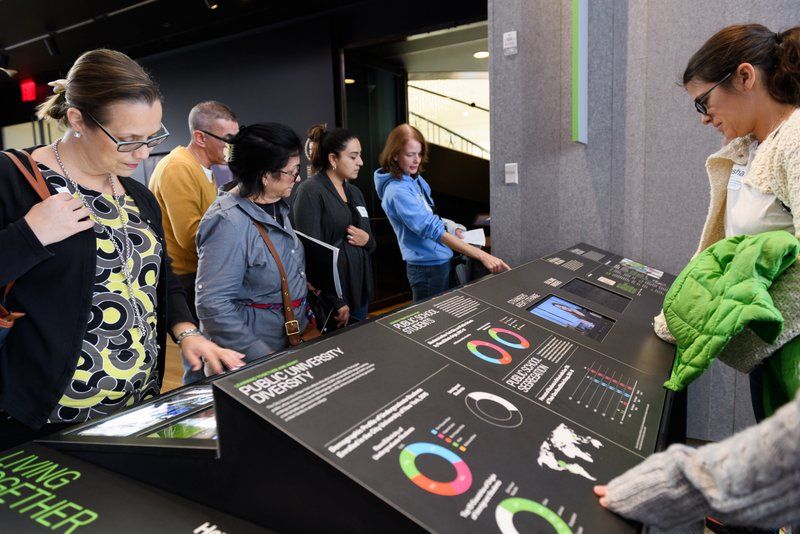 Side tables enable visitors to look into specific subjects and many of these modules have built-in design programs so you can redesign streets, built your own housing complex, or design a park within actual New York City neighborhoods. The designs that visitors create can be saved and submitted, and are then displayed on a large screen where thanks to a video and sensor, a pixelated version of yourself can actually interact with your own design. But be careful – the digital people inside the designs might complain (or applaud) your design efforts! And like Sim City, all of your initiatives will have a quantifiable impact, whether on budget, traffic, and other measures tallied by the program.