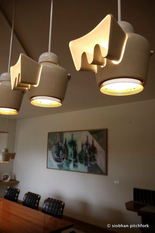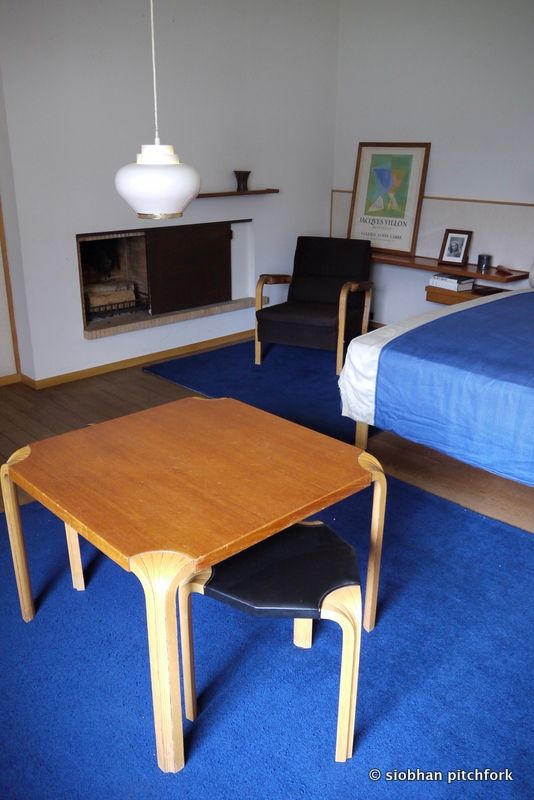 Louis Carré and Alvar Aalto met at the Venice Biennale in 1956 where Aalto opened his Finnish Pavilion, and became life long friends, with Carré giving Aalto free rein to design the house and all the fittings and furniture inside, even down to the door handles. The only requirements were a slate roof (to remind him of his native Brittany) and large enough walls for him to hang his huge collection of modern art. In the dining room you can see lights designed specially to light not only the table, but also the art on the walls.