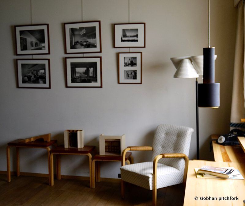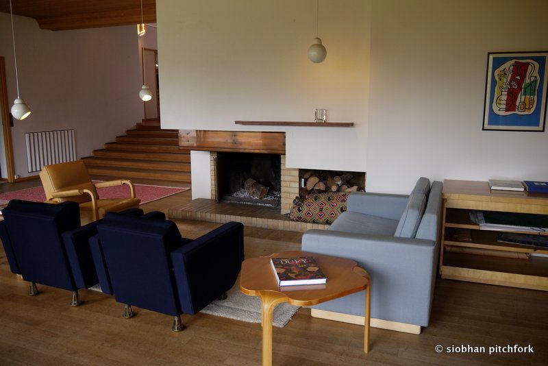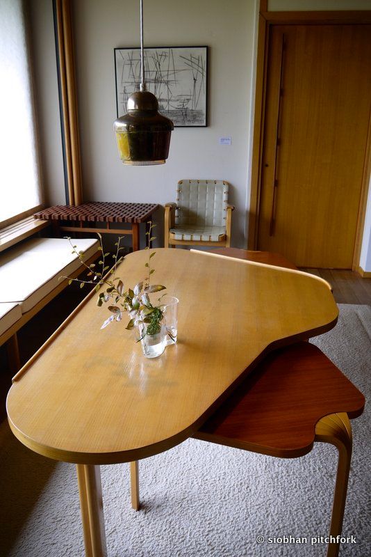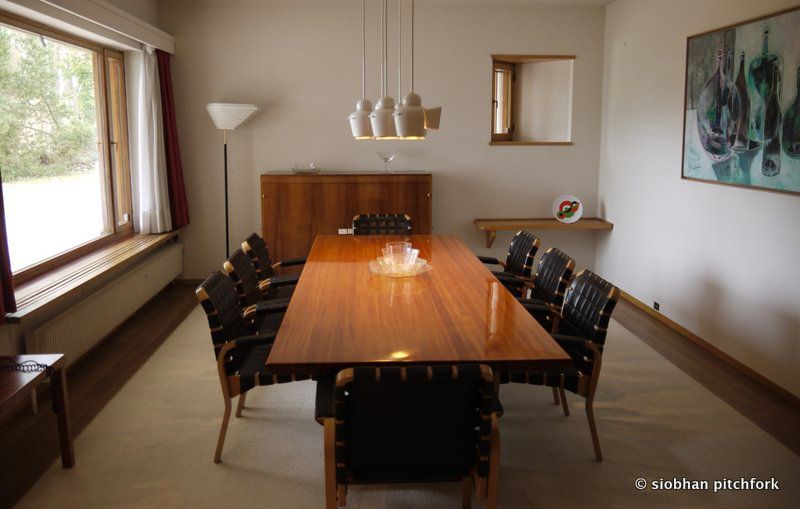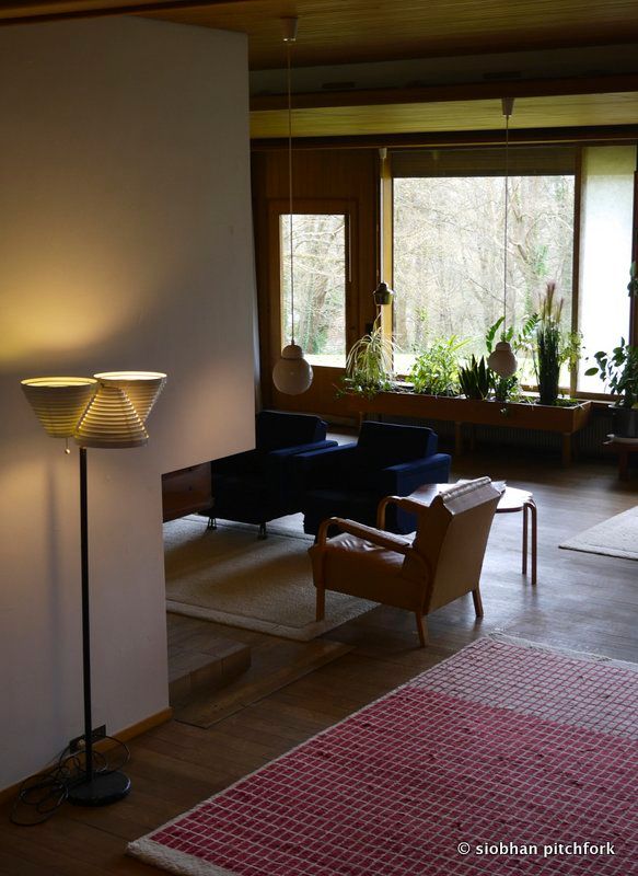 The main room of the house is the large open plan living room, filled with furniture and lighting either specially designed by Aalto for this house, or taken from his catalogue (Artek, still edited today). His Scandinavian roots and influences can be seen throughout the house (notice the windows, the air vents and the sauna with an exit into the garden) as well as his love of Japanese architecture.