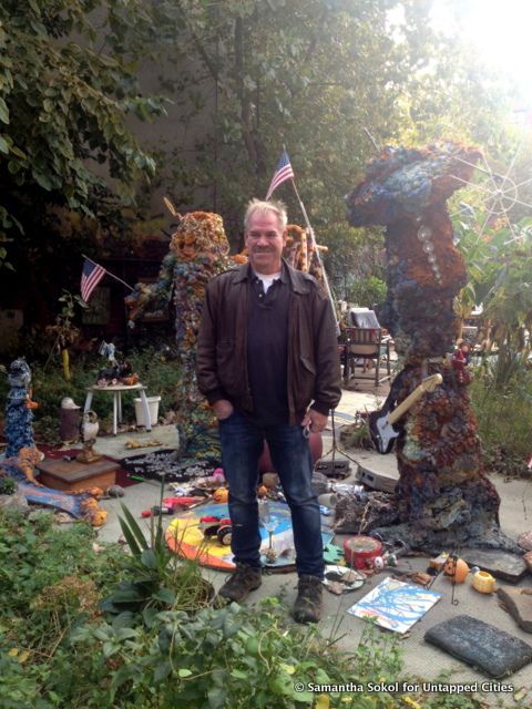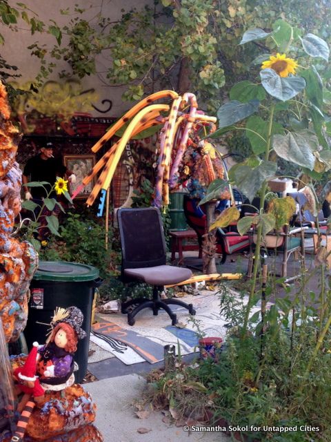 When walking down Avenue B by 2nd Street in Alphabet City, you may notice a garden with a rather unusual sculpture collection. Upon first glance, it seems akin to the Cathedral of Junk in Austin. However, this garden, entitled 2Bn2C, is the work of Ken Cro-Ken, a self defined eco-artist who aims to harness the power of nature in his art. We recently had a chance to talk with him amidst his unique creations.
