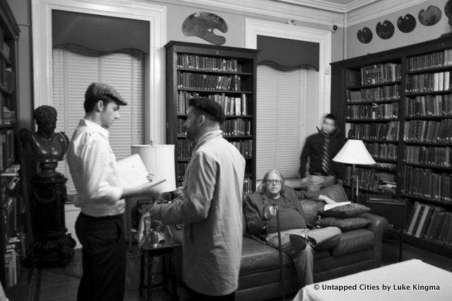 For last night’s event, the historic Salmagundi Club, founded in 1871, played host to a variety of unique experiences, to which we were initiated. In the parlor room, we were ushered into the era of the Tudors, being dressed and photographed by the theatric and fun Ventikoland. Untapped New York’s Sunday in Chinatown columnist Luke Kingma discovered what it was like to be turned into a “maiden bride with child,” replete with makeup.