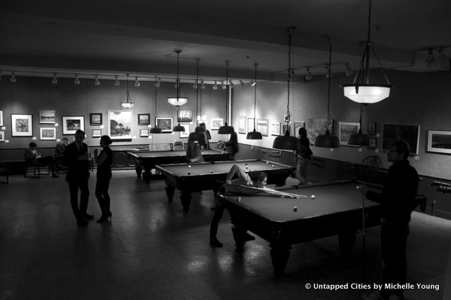 In the library gathered at least 30 for some “Drinking through Literature” by Joios, where Hemingway quotes were repurposed as toasts, and next door was arts and crafts by Laura Lee Gulledge. In the basement level, there were billiards to the backdrop of a live piano man, a photo booth by Onomonomedia, poker and etiquette school. Finally, in the main gallery there were tango classes.