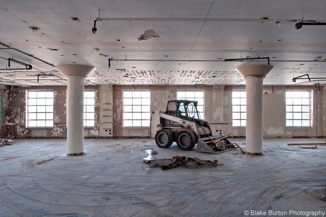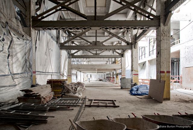 In 2009, during the economic recession in America, Blake Burton was fresh out of architecture school and unable to land a job in that field. Burton was hired by the City of Atlanta’s asset management office, where his job was to help supervise the cleanup of the building that would become Ponce City Market. Immediately awed by the immense scale and detail of the largely empty edifice, Burton began taking photographs in an effort to preserve what he could, convinced that the building would be demolished.
