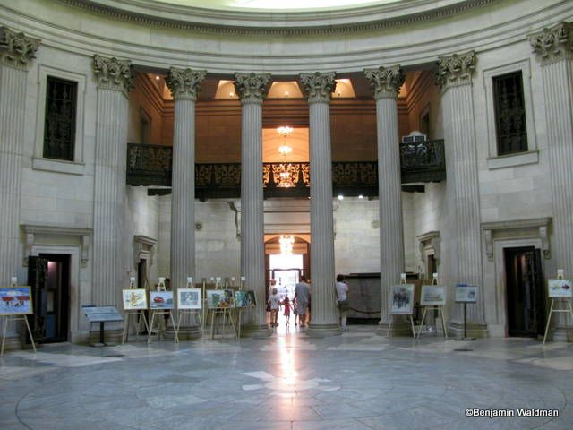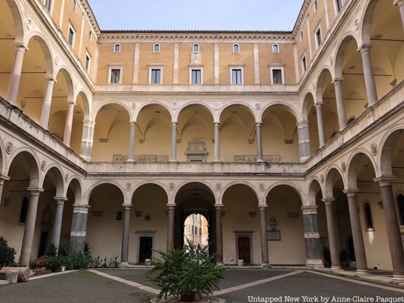 The building’s terra-cotta vault was inspired by the Palazzo Farnes and its columned entrance was possibly modeled on Bernini’s Colonnade, at St. Peter’s