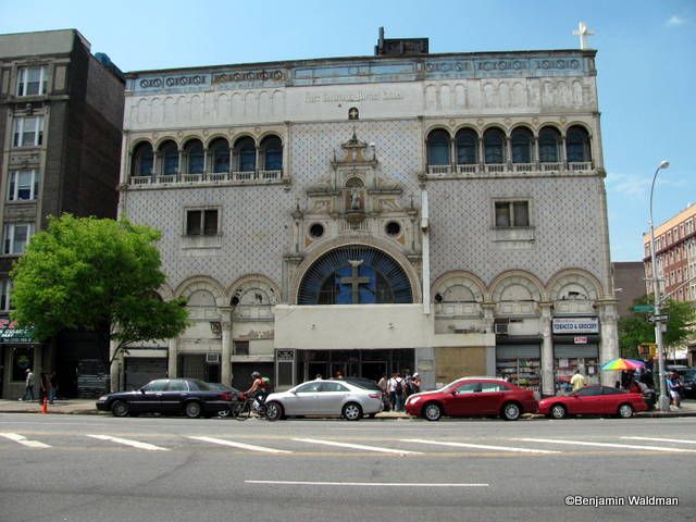 This inspirational architecture is no longer visible due to the numerous billboards that cover the building. Image via WikiCommons