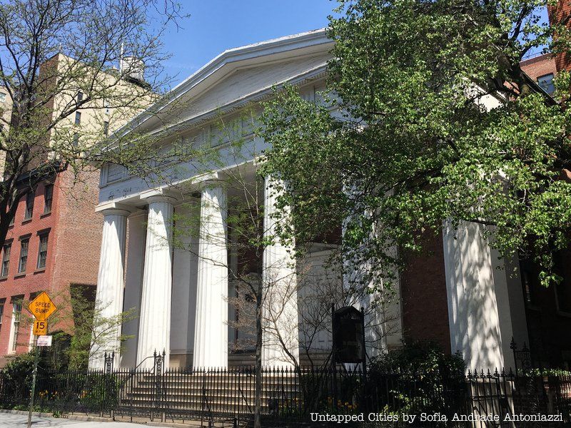 The 1889 Village Community Church, formerly 13th Street Presbyterian Church, was modeled after the Theseum.