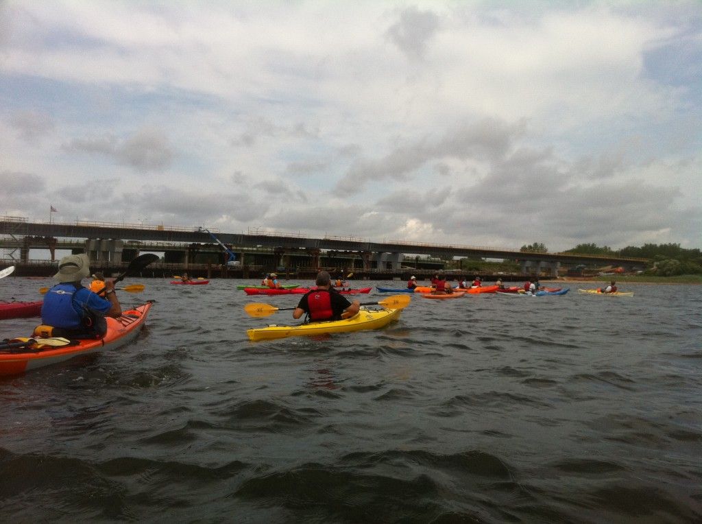 On our paddle, the group leaders took us around Paerdegat Basin, under the Belt Parkway and out to a sandy point about a mile away on the Mill Basin. There were plenty of birds to see, although the only ones I could name were the 747s constantly cruising over us on the way to nearby JFK Airport. Engines and the highway’s drone aside, the city feels very far away.