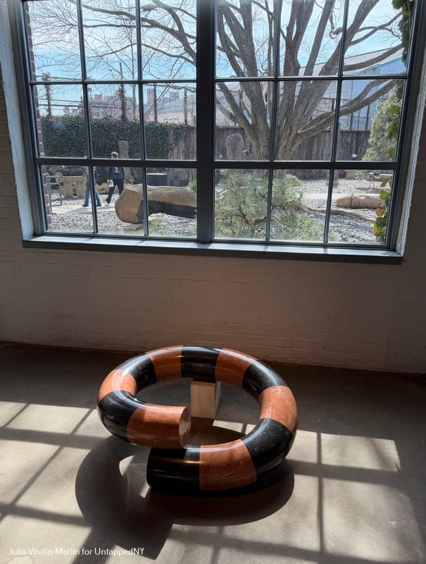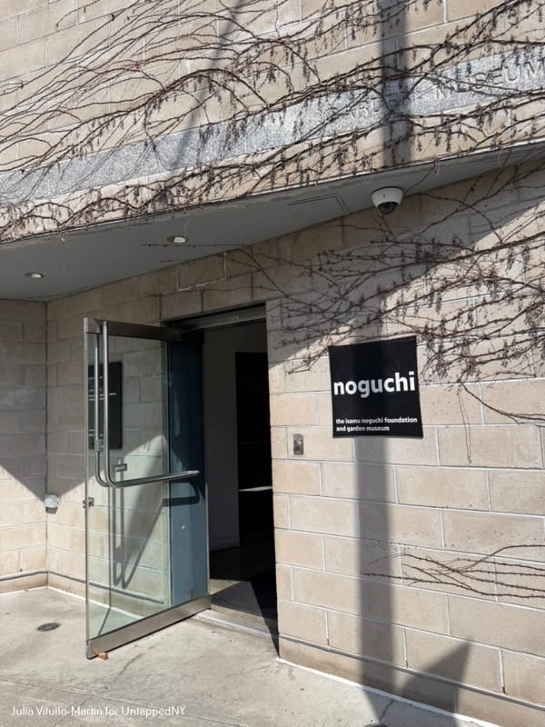 You enter through a small-ish Alice-in-Wonderland type door on 133rd Road, and are immediately greeted by museum employees, who gesture towards a second door that takes you to an outdoor space full of Noguchi sculptures—some bold, some modest, some intimidating, all engrossing. Explanations are few. The art work stands on its own. As you walk through the sculptures you'll see the garden, still austere from winter and wonderfully Noguchi-like. He liked pebbles.
