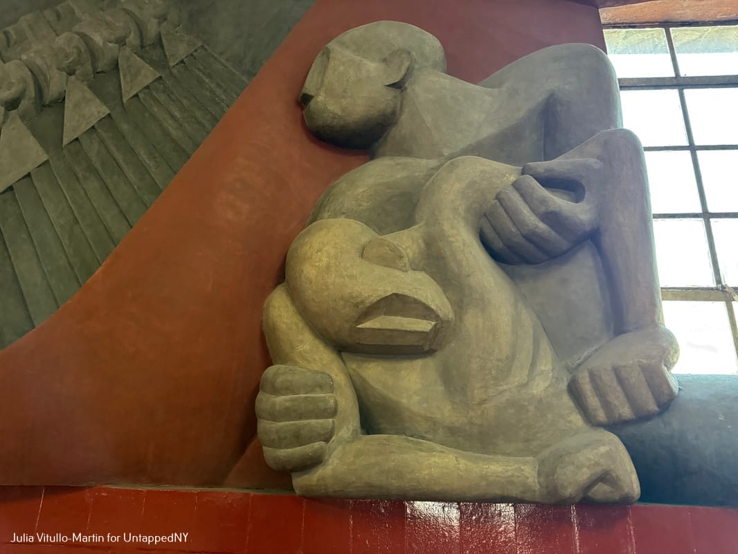 History Mexico is not only Noguchi's first realized public artwork, four years before his Rockefeller Center sculpture, it is still extant and magnificent. Located on the second floor of the Mercado Abelardo L. Rodriguez in Mexico City's historic center, it remains astonishingly vivid and dominant, its composition of concrete and pigmented cement as alive today as in 1936.