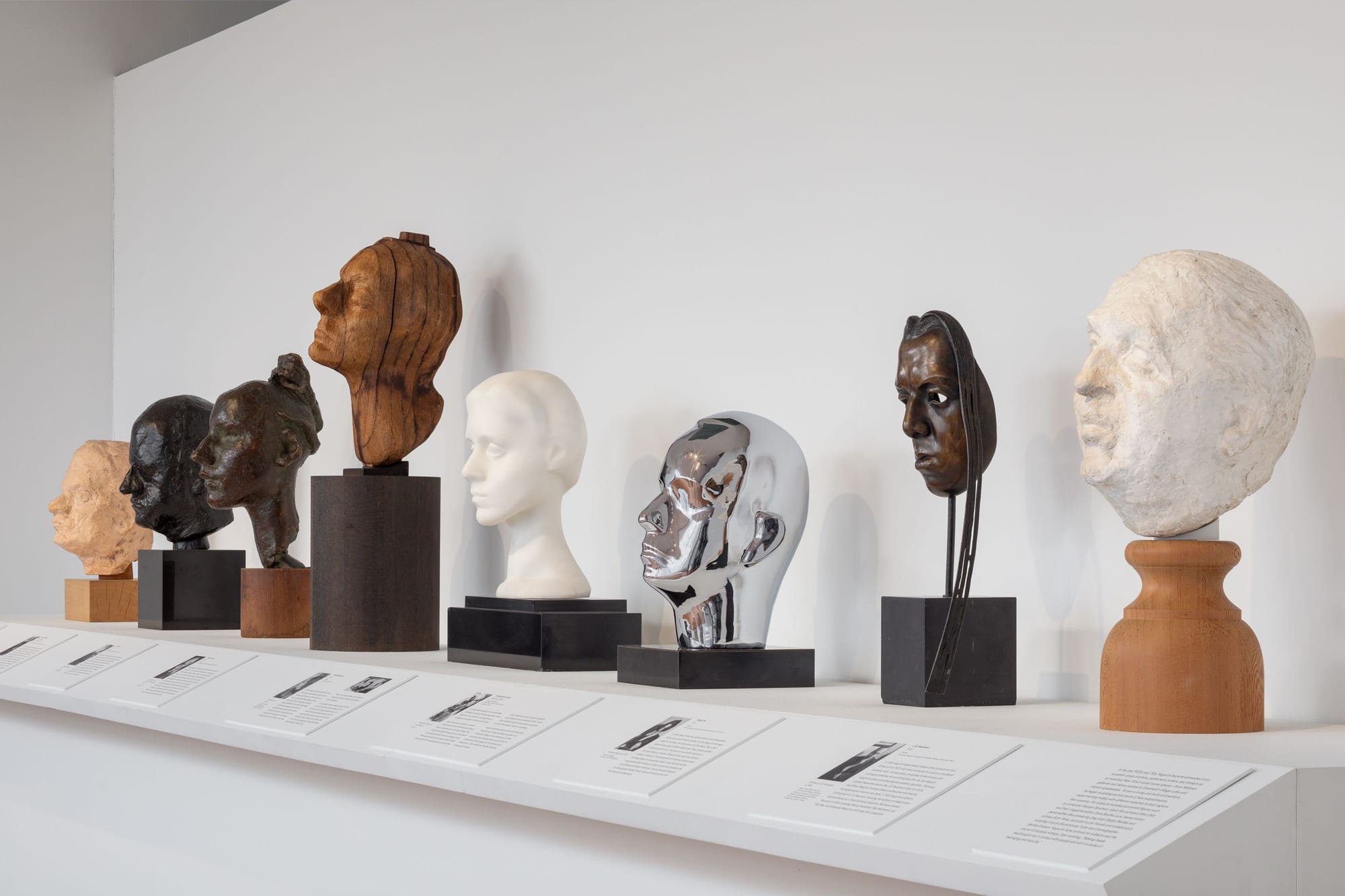 (left) Busts of (left to right) José Clemente Orozco, Murdock Pemberton, Ruth Parks, Suzanne Ziegler, Clare Boothe Luce, R. Buckminster Fuller, Michio Ito, and J. B. Neumann. Photo: Nicholas Knight. © The Isamu Noguchi Foundation and Garden Museum, New York / Artists Rights Society (ARS) (Right) Noguchi's bust of eminent Mexican sculptor, José Clemente Orozco