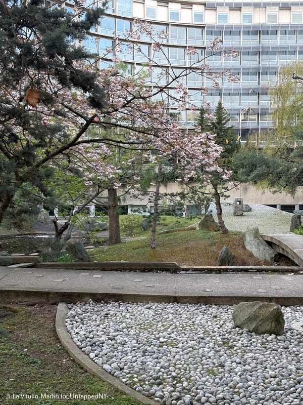 After his travels Noguchi had hoped to return to Greenwich Village, where he had lived from 1942 to 1949. His biographer, Hayden Herrera, wrote that on MacDougal Alley in the Village Noguchi "had two brick buildings that once closed off the alley's end. Number 33 included not only his studio, but also a garden with a large tree and a flagstone path flanked by shrubbery and even a small fishpond."