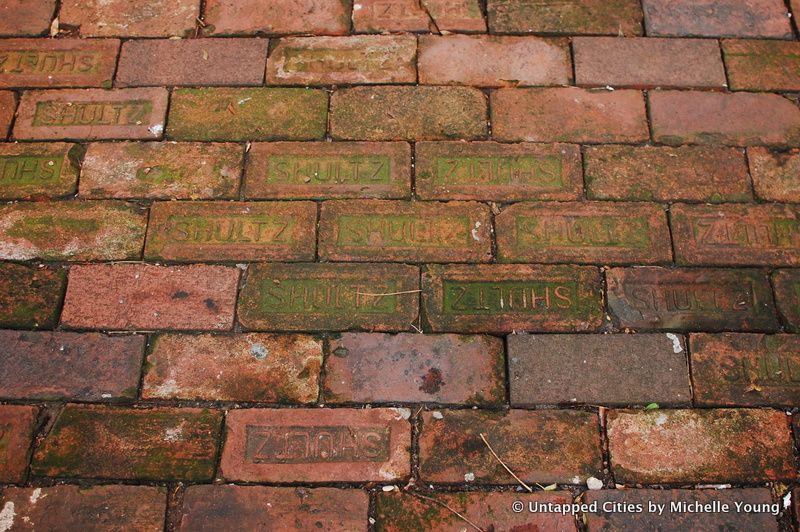 But I was curious about what the building was before Jane Jacobs made it noteworthy. NYC.gov data estimates it was built in 1901. As early as 1922, it was listed in the New York Times as a “three-story brick store and dwelling,” suggesting that it may have been designed for mixed-usage. The building appears to have been part of an estate and passed through a few hands until Jacobs and her husband bought the place in 1947 for $7000. In 1946, it was assessed at $8500 so the Jacobs got a great deal on it! The bricks in the courtyard are imprinted with the name “Shultz,” a brick manufacturer from Kingston, New York that was founded in 1876. The brick factory still exists, albeit abandoned, in the Hudson River Valley. For now, you can check out Jane’s house by visiting Glassybaby, the glass shop on the first floor.