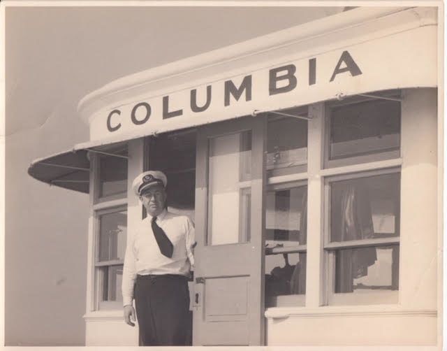 The Captain of the SS Columbia standing outside the bridge, circa late 1960’s. Image via the SS Columbia Project