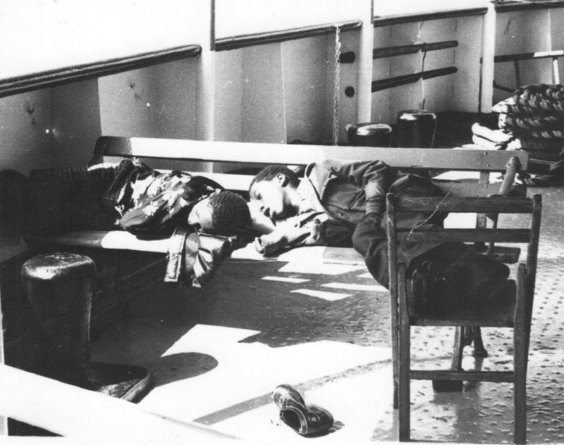 Tired kids after a day at Bob-Lo sleeping on a bench aboard Columbia circa 1975. Image via the SS Columbia Project
