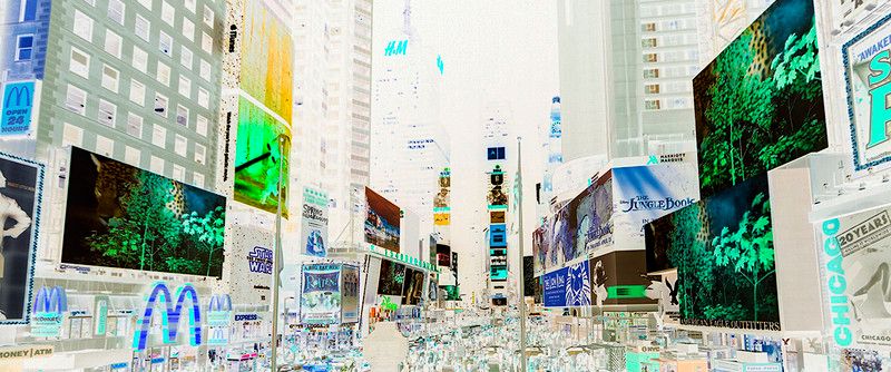 Along with listening to the sounds of the rainforest, participants are also encouraged to turn on the negative viewing function on their iPhones to view the accompanying video. By inverting the colors on the screen, a more “positive” version of the film is revealed, brightening the colors of the Amazon while whiting out all the technology and modernity of Times Square.