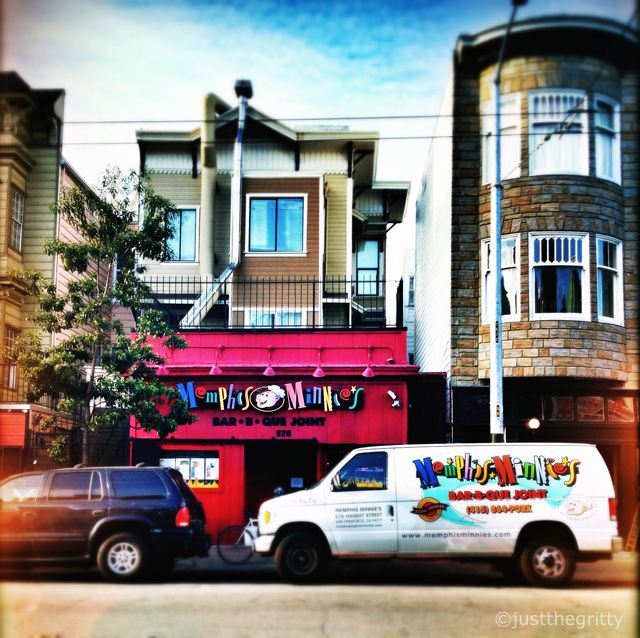 Memphis Minnie’s is serious about food. They do BBQ right: slow-smoked from 4-18 hours, no gas, no electric, smoked only with oak. The menu is simple, and believe me when I say it’s not in line with any health initiatives. You have to like your ribs dry-rub style, even though you can add sauces at the plastic-covered tables (each one furnished with its own roll of paper towels).