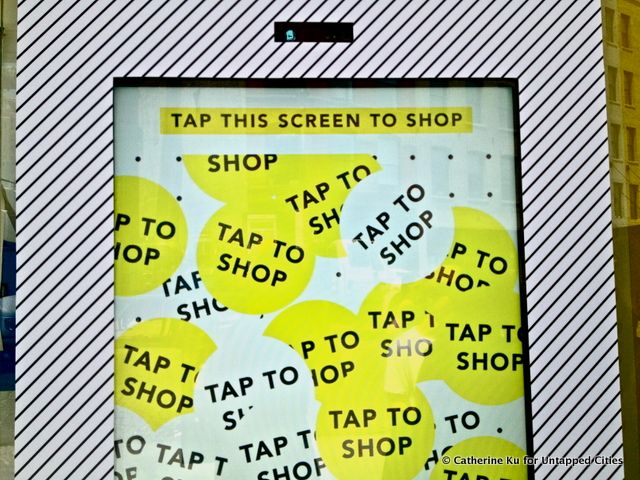 In place of a door, a touch screen links the sidewalk shopper to the web.