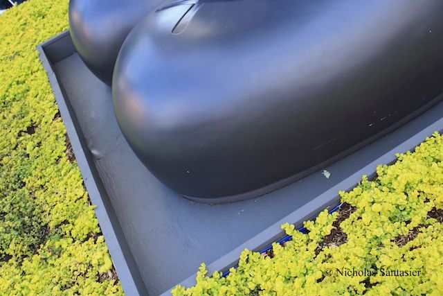 The flora seem designed to keep people from climbing on the statue and scuffing it up, which apparently has been effect as it has been here since June and there are very few marks on the statue itself aside from some light weather damage.