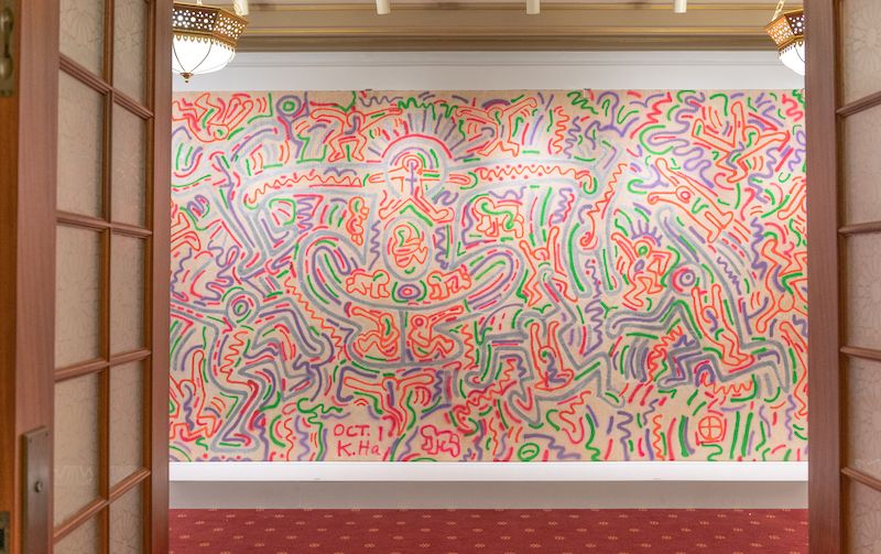 A legend of New York City’s street art scene, Keith Haring is known for his graphic line drawings. During his short but prolific career, his work appeared in over 100 solo and group exhibitions and his artworks remain in the collections of major museums like the Whitney and The MoMA as well as public and private spaces around New York City. And for a limited time, a mural by Haring and his collaborator Angel Ortiz (LA II) — never before seen in New York City — are now on view at the New York City Center, a performing arts center in Midtown.