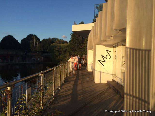 Already, skateboarders are zipping by, mixing with students and residents walking along the new canal walkways, and visitors coming directly to experience the culinary offerings. The Filling Station, a former gas station has been converted into a bar, restaurant and museum, with a sheltered terrace looking out onto the canal. The Museum of Architecture shares this space, with the current exhibition Vertical Urban Factory, formerly at New York City’s Skyscraper Museum.