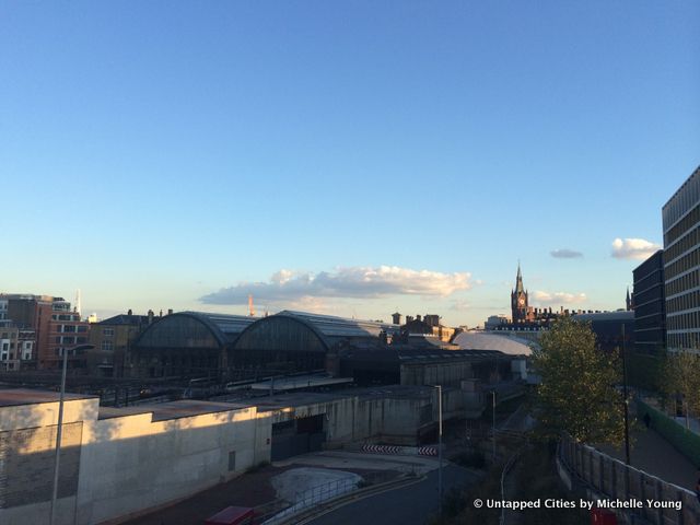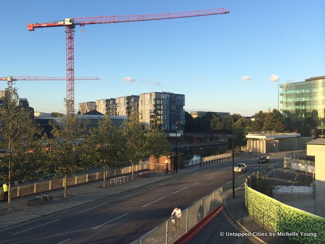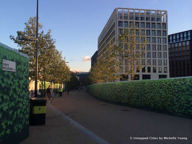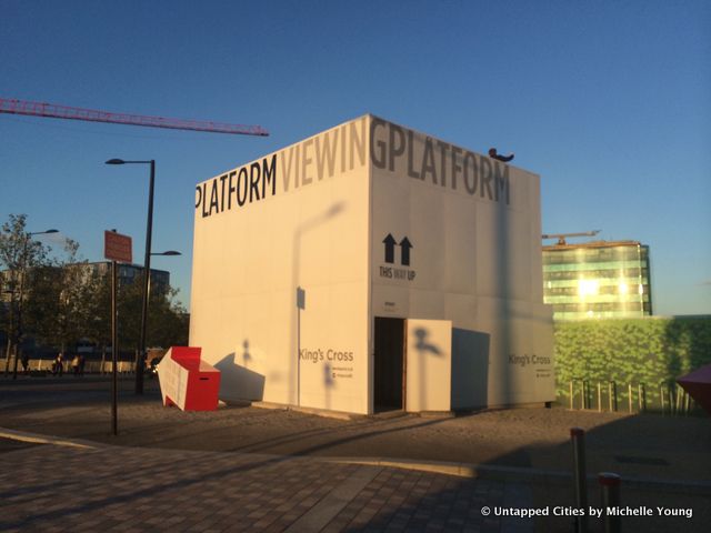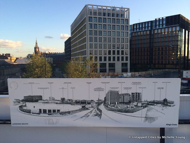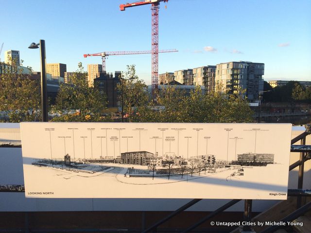 Even the scaffolding has been thought out, printed to look like a leafy hedge row, while a stack of shipping containers is converted into a viewing platform with a great 360 degree panorama of the area. Here at King’s Cross, they’re not wary of showing you the construction sites from above: