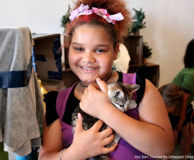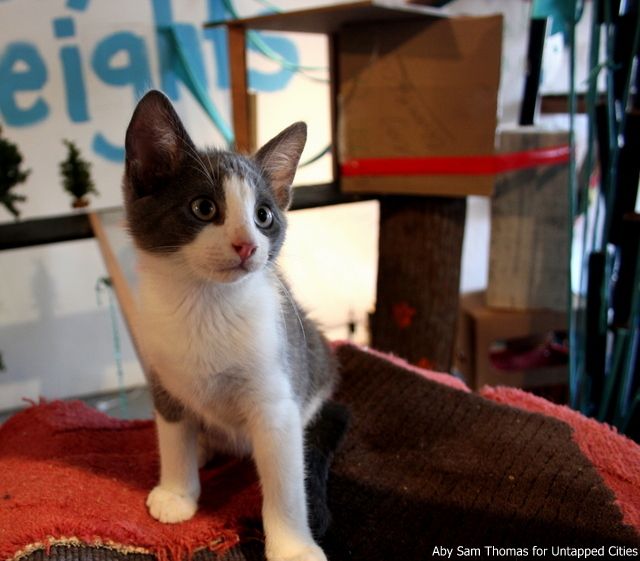 On Saturday, Flux Factory unveiled Kitty City to the world, and let 23 cats take over the colorful, intricate space that was filled with tunnels, loops and strings galore. The cats, most of whom were kittens, were brought to the space by For Animals, a no-kill animal shelter in Queens, and human visitors to Kitty City were given the option to adopt the animals free of charge. Also seen at the event was Neighborhood Cats, an organization that aims to reduce feral cat population with their trap-neuter-return drive, one of the most humane ways to control the overpopulation of cats in communities.