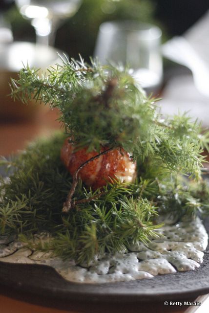 La carte mêle nouveautés et plats déjà légendaires. On se laisse attendrir par un bar/nectarine, avant qu’un homard géant fumé à la genièvre s’offre à nous pour une dégustation primale avec les doigts !